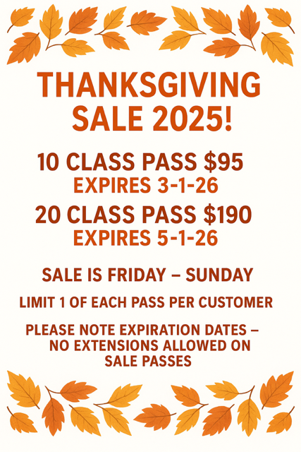 ANNUAL THANKSGIVING DAY YOGA DONATION CLASS IS ON! 9:30 am All proceeds go to Yuletide Hunger Program.